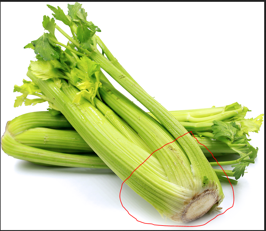 1 entire celery base as shown below (or 3 entire celery stalks should do the trick as well).