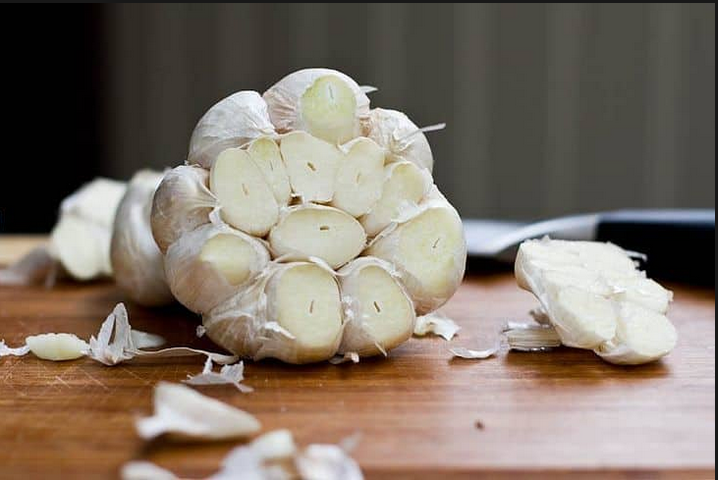 This is also peeled, however, it’s only slightly peeled, don’t go to the trouble of peeling every garlic, just get the outermost layer off. It should look like the image below.