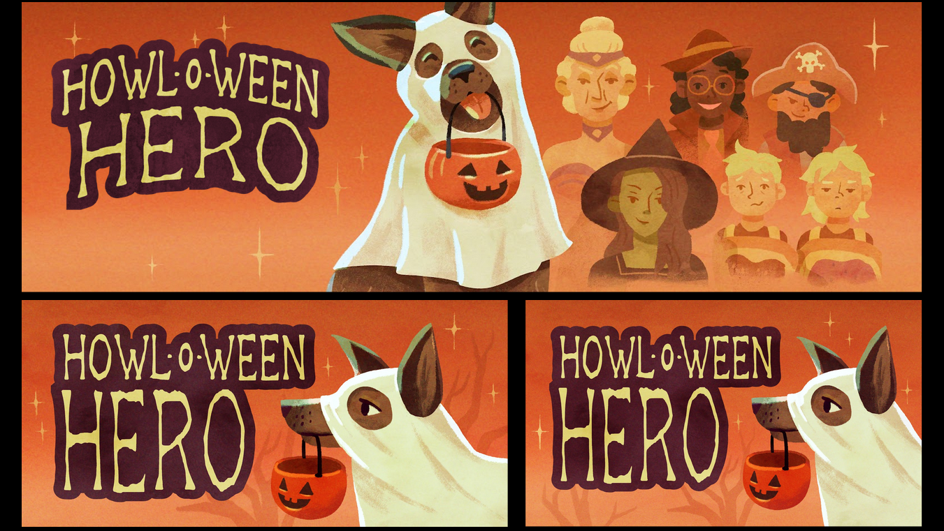 In starting to come up with an idea for a game we wanted to work on, we wanted to not only be able to have commercial success with the game, but we wanted to be able to grow as a studio, diversifying the kinds of games we work on, and expanding our skill set and toolbox. We also wanted whatever game we worked on to be developed quickly. Our previous game, Sole was not only our first game, but it was a student game. Because of this, the game was kind of in “development hell” always getting pushed back, we never knew how long anything would take or how far along we were, what was considered reasonable for release, etc. And the game, while simple in gameplay, was vastly over scoped in terms of different environments, linear/scripted sequences, original dynamic music, different movement systems, unique art style and gameplay, etc. We knew that this game we wanted to be incredibly small scoped and focused on the elements of game dev that we had not been able to work with much previously. These elements were: dialogue, story, 3D animated humanoid characters, character clothing, and physical objects. The final goal, the one that really mattered to us the most was, develop the game in Unreal Engine 4, so that we can learn the engine and use it in the future. These goals coupled with the goal that we wanted a marketable game that could appeal to kids, and release in about 6 months of development, we looked ahead in the calendar and saw Halloween would be just a couple weeks out from our target deadline. Once we hit the idea of a little dog dressed in a ghost costume trick-or-treating for their owner, we were sold.