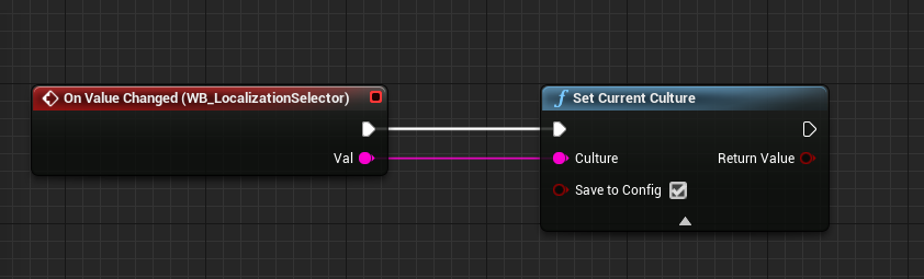 If you have been able to do everything above, the only thing left is to allow people to actually select the language they want to use, luckily this is very simple in Unreal, you don’t even have to manually save this data. There are just a few blueprint nodes that you need to be aware of.